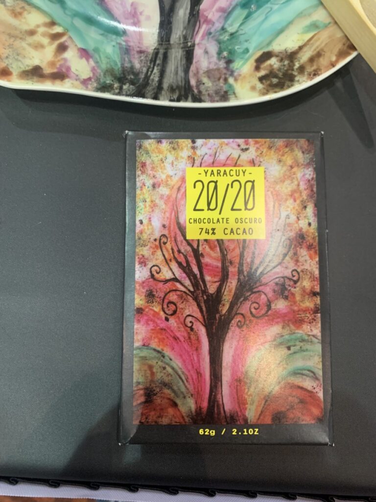 Tasted: 75% Criollo Mexico with Pataxte. Pataxte is called ” the unlucky cousin of cacao”. It is not cacao, it is closely realtae. It grows wild in Mexico and is sometimes mistaken for Cacao. Sarah told me about it and I had to seek it out to try it. It was difficult to separate from the chocolate as it was sprinkled on top. It was earthy, mild , toasted rice notes. It was fun to try something I never heard about before.