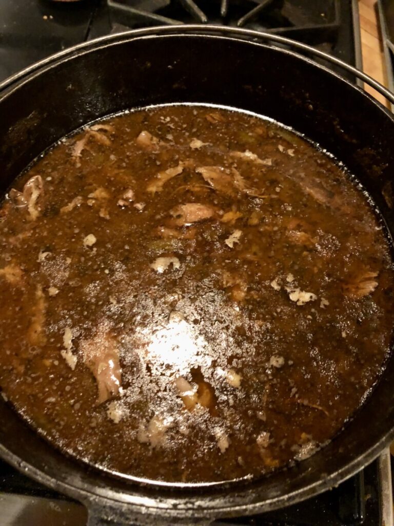 Sheryl showed me peace outside of the kitchen that was as comforting as being in the kitchen. I cooked with her whenever I could and through the years and we became very close, she became the mother I never had. She gave me the support, care and encouragement I needed. Cooking together was never just about the food, there was always a deeper learning. She would be proud and excited that I am writing and traveling and cooking and though she is gone from Earth she continues to be my biggest support and inspiration.  As she aged and dementia began to show its ugly face, I remember one of the last dinners we had where she was fully present. She made one of my favorites, duck ragu over polenta – it was so good with cinnamon and cumin fragrant and rich. We were reminiscing on different dishes she and I have cooked over the years and having a great time going down memory lane. To my surprise she got up from the table and grabbed her cast iron pot and gave it to me. She said she knew she wouldn’t be able to cook much longer and wanted me to have it.  It still smells like her gumbo.