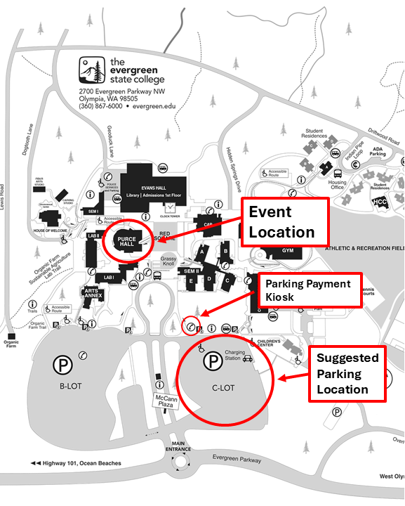 - Location: Evergreen Campus – Purce Hall (west side of Red Square)