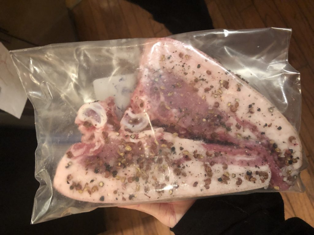 This 16 credit in-program independent learning contract entitled “Pig to Pork” is designed for the student to do a quarter long case study of terroir with her American Guinea Hogs. This will include gaining hands on experience in nose-to-tail butchery, charcuterie, experimenting with selective feeding to shape the flavor of the pork, and tasting labs with a foodoir. It also includes learning about the social, environmental and flavor affects of pasture raised heritage breed hogs vs. industrial confined hogs. The student will be gleaning curriculum and modifying assignments from the program Terroir Meroir: Towards Agricultural Agribusiness.