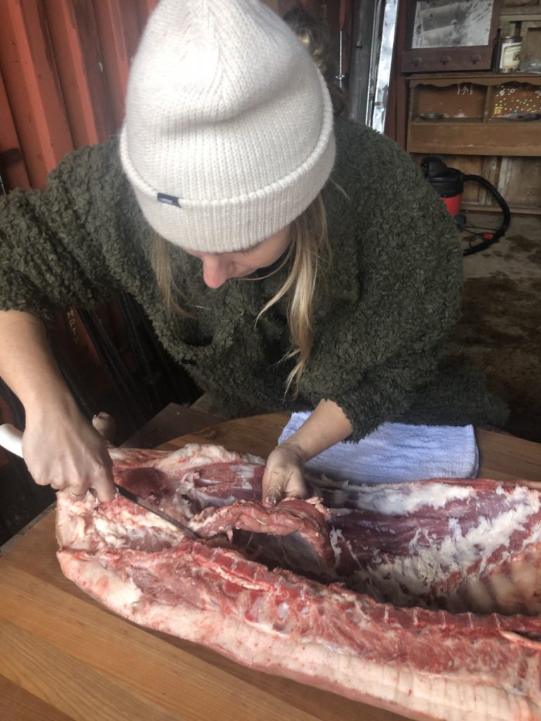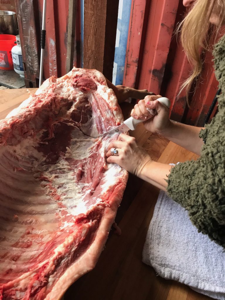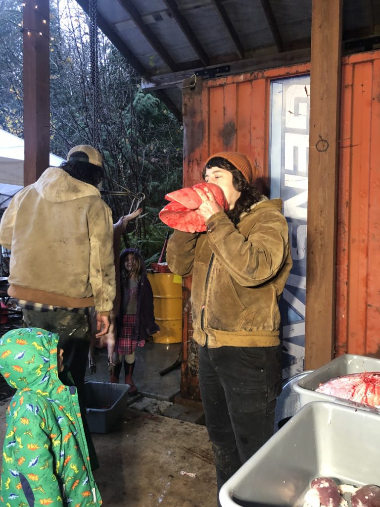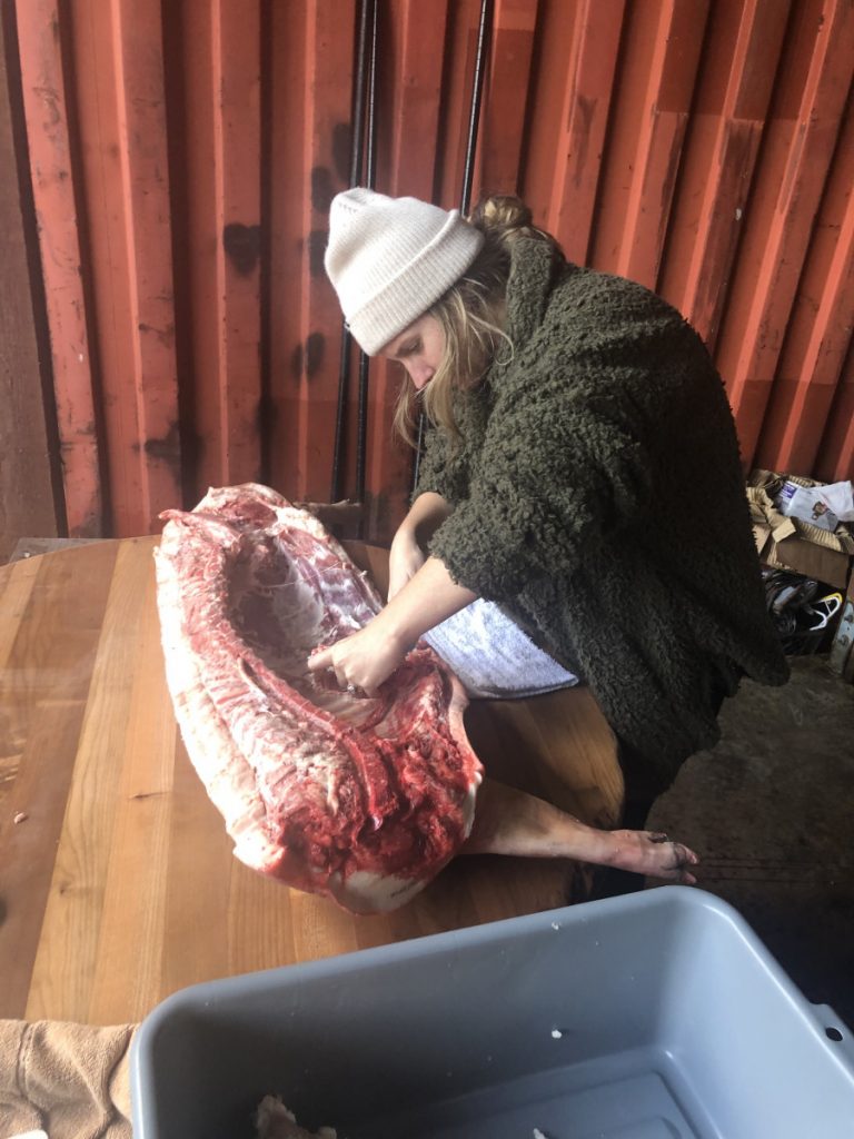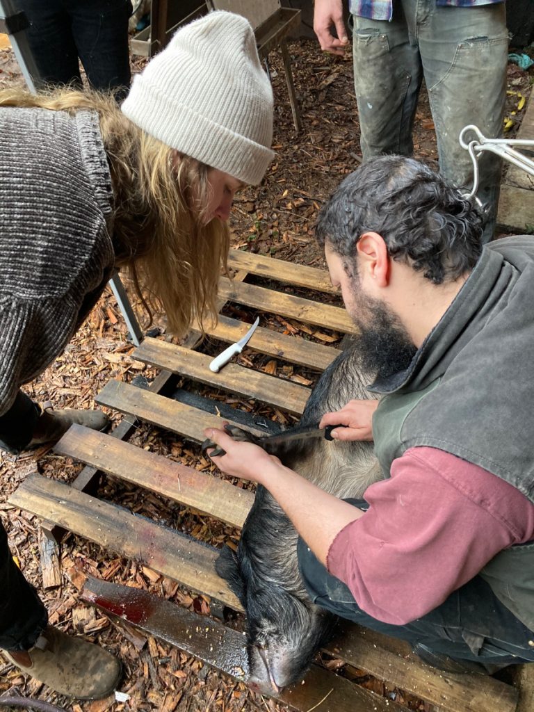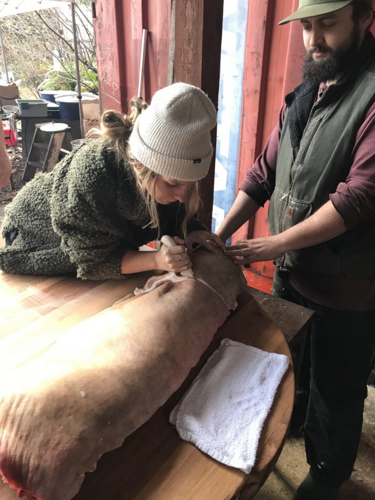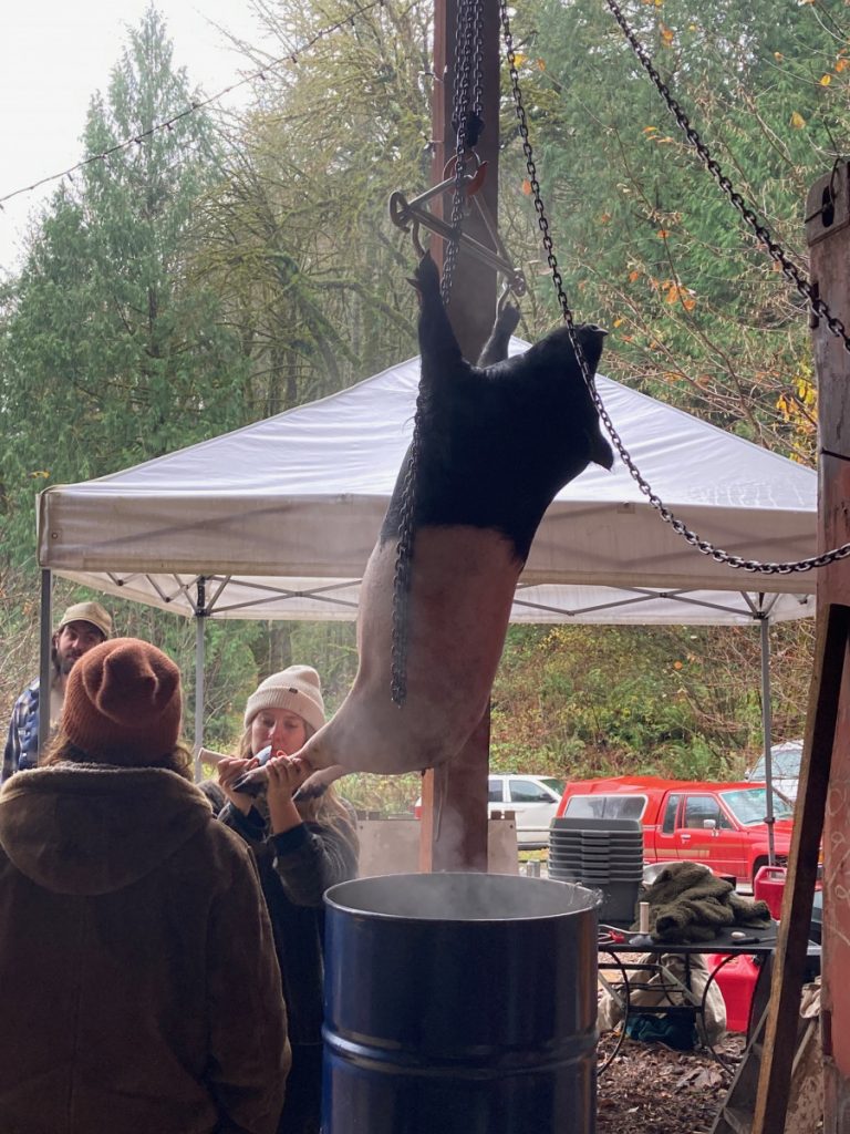 | How to humanely and honorably harvest a hog and learn nose-to-tail butchery | Read Homegrown Pork: Humane, Healthful Techniques for Raising a Pig for Food by Sue Weaver Do a facilitated workshop on the nose to tail butchering. Use The Farmstead Meatsmith (Brandon Sheard) membership videos and literature for guidance. Harvest a whole hog and use every part of it while documenting the experienceCreate dishes out of the offal | ePortfolio WordPress Website: Photos, Writing, Time Log |